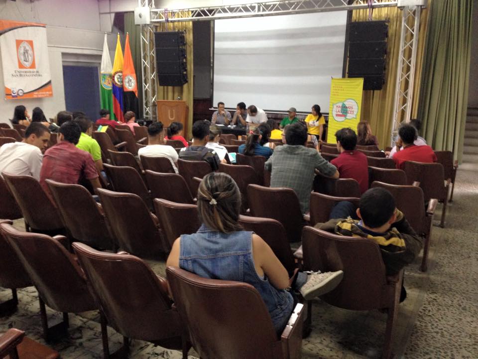 Imagen del Conversatorio: Desarrollo territorial y paz, dictado en el marco del Festival Hagamos las paces, evento promovido por la Oficina del Alto Comisionado para la Paz con el apoyo de las universidades y el Programa de las Naciones Unidas para el Desarrollo – PNUD. Este evento fue un aporte desde la academia al proceso de paz que se desarrollaba en La Habana, Cuba. En Medellín, el evento tuvo lugar el 23 de abril de 2015 en la Universidad de San Buenaventura – Sede San Benito.