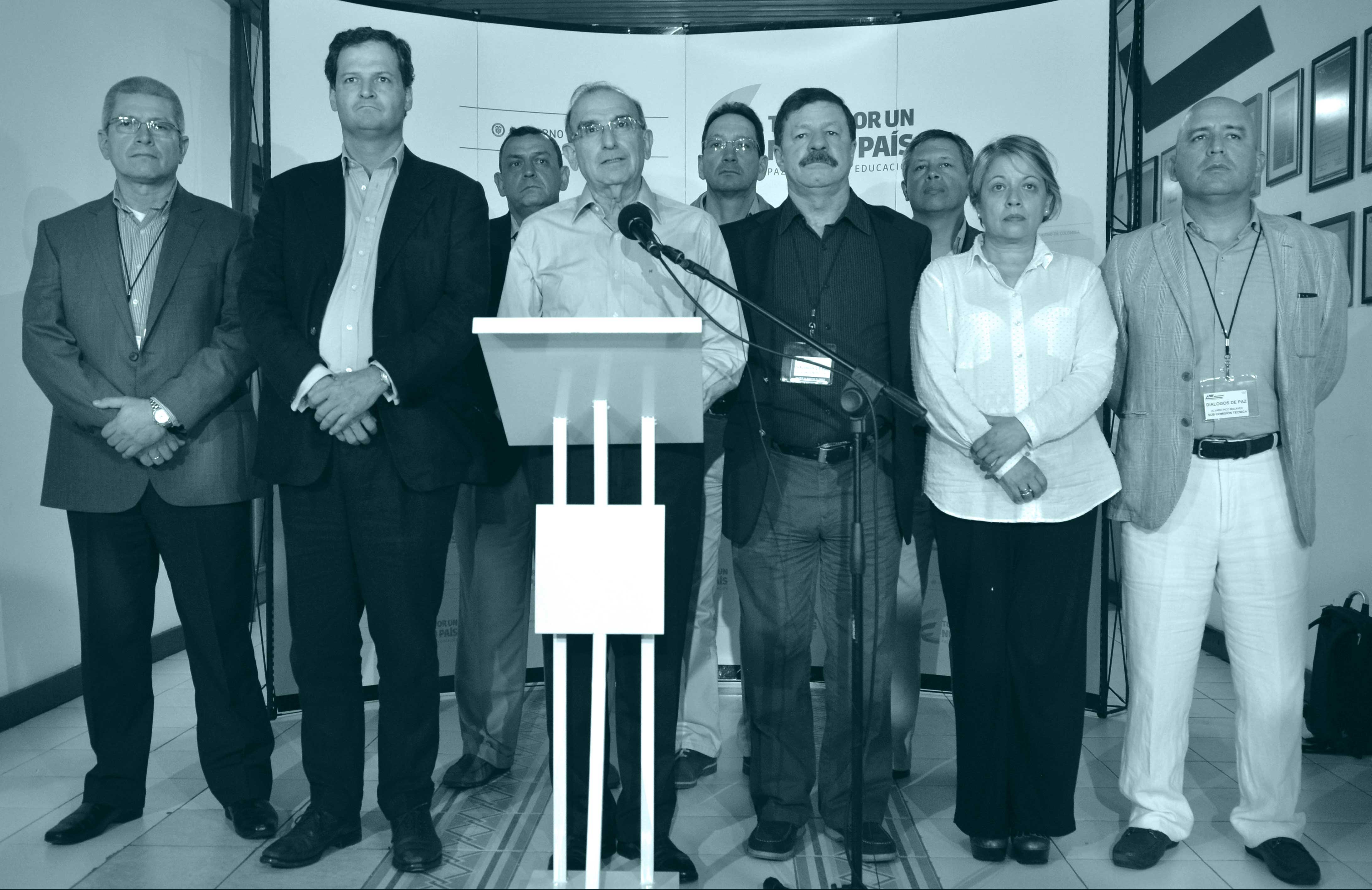 Declaración de Humberto de la Calle Lombana, jefe del Equipo Negociador del Gobierno, acompañado por Sergio Jaramillo Caro, alto comisionado para la Paz, María Paulina Riveros Dueñas y los generales que integran la Subcomisión Técnica para el Fin del Conflicto.