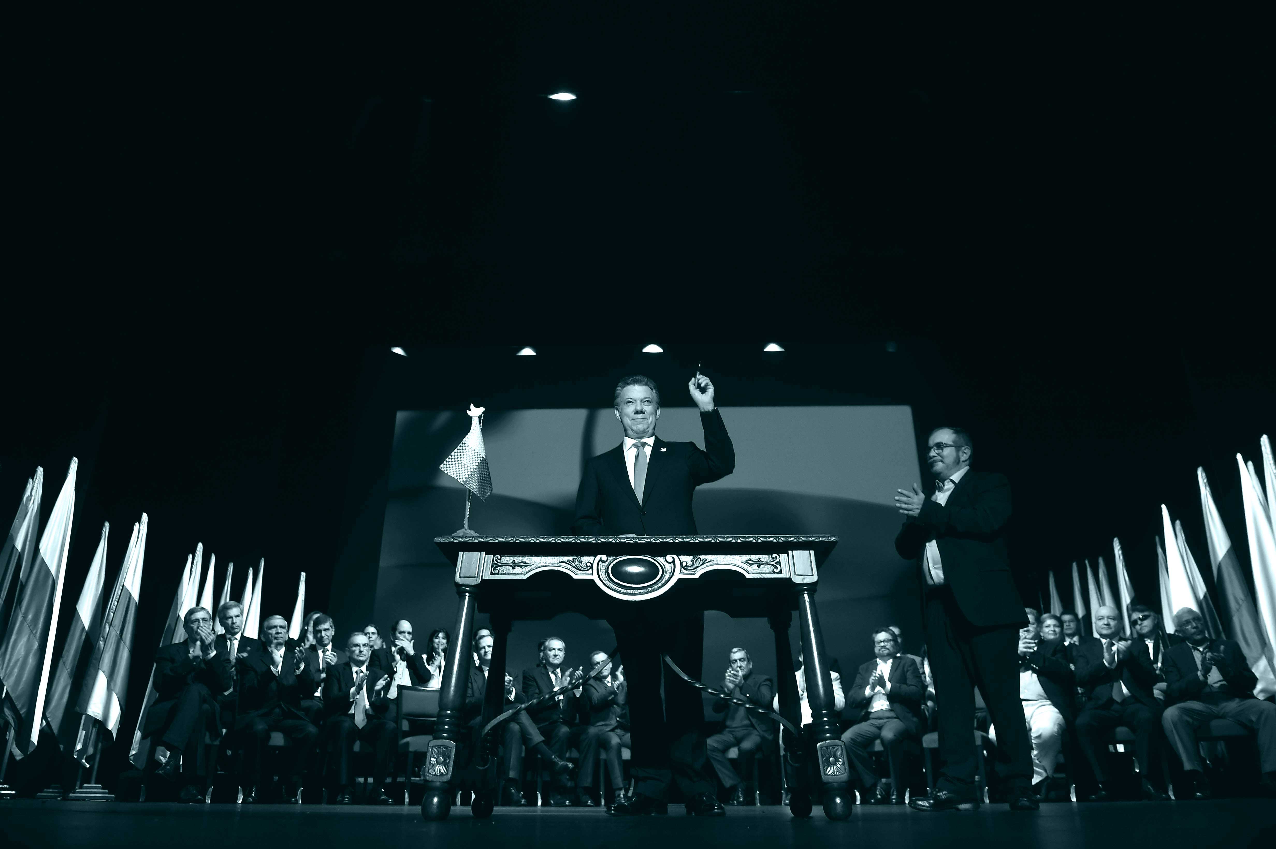El presidente Juan Manuel Santos Calderón se dispone a firmar el Acuerdo Final Para la Terminación del Conflicto y la Construcción de una Paz Estable y Duradera en ceremonia cumplida en el Teatro Colón de Bogotá.