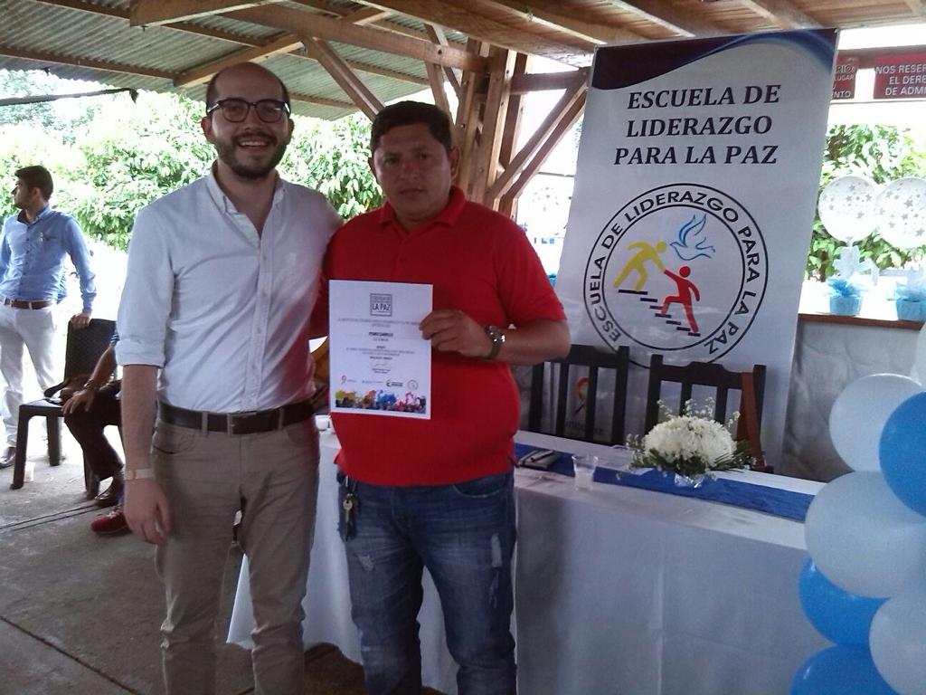 Imagen tomada durante la clausura del Diplomado: Escuela de liderazgo para la paz, dictado por la Oficina del Alto Comisionado para la Paz en los municipios de Arauquita, Saravena, Tame y Fortul del Departamento de Arauca. Este diplomado con líderes y formadores de paz en las regiones que buscaba entregar información certera y precisa sobre los Acuerdos de La Habana, también se convirtió en un espacio para compartir aprendizajes en temáticas referidas a la relación urbano-rural, políticas de ordenamiento y desarrollo territorial, conflictos territoriales locales y regionales – agua, minería ruralidad, desplazamiento, normatividad, entre otros-; derechos económicos, sociales y culturales.