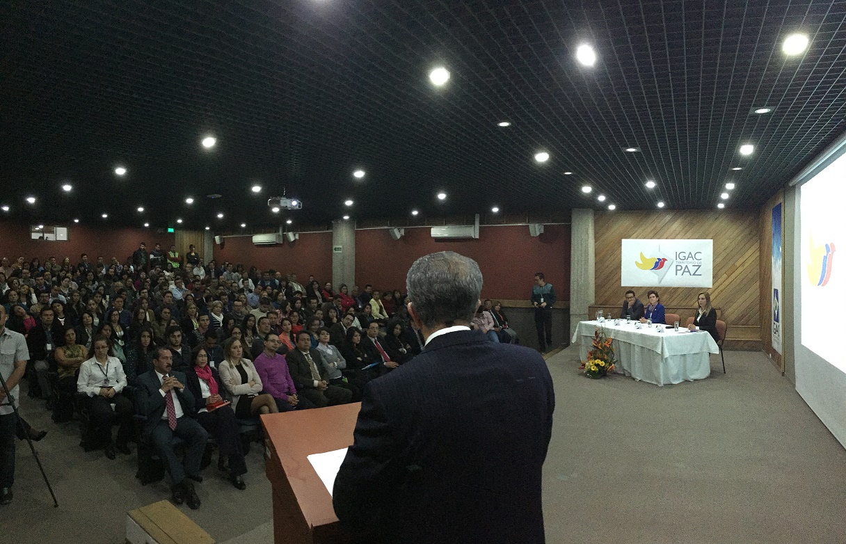 Imagen tomada durante la apertura de la exposición “Servidores públicos constructores de paz” liderada por el Departamento Administrativo de la Función Pública (DAFP), con el apoyo del Grupo de Pedagogía de Paz de la Presidencia de la República y la Oficina del Alto Comisionado para la Paz (OACP). En la imagen, Juan Antonio Nieto Escalante, director general del IGAC se dirige a los servidores públicos.
