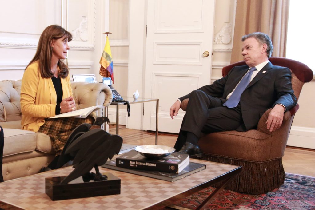 Reunión del presidente Juan Manuel Santos Calderón con la exministra, y excandidata presidencial Marta Lucía Ramírez, en la Casa de Nariño tras el triunfo del “No” en el plebiscito por la Paz, que buscaba refrendar el Acuerdo de Paz firmado por el Gobierno Nacional con la guerrilla de las FARC-EP. Foto por Nelson Cárdenas.