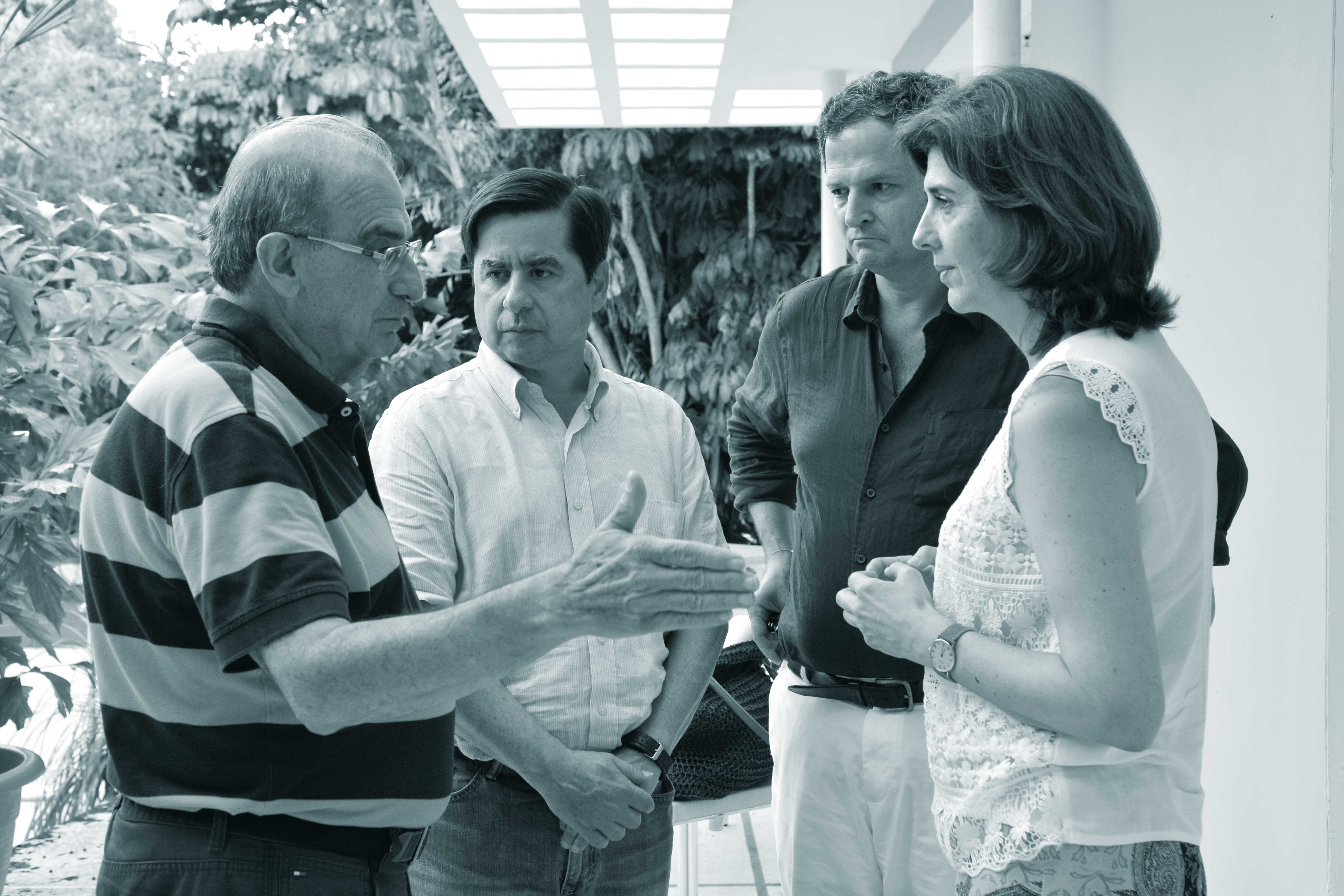 Humberto de la Calle Lombana, jefe del Equipo Negociador del Gobierno, Juan Fernando Cristo Bustos, ministro del Interior, Sergio Jaramillo Caro, alto comisionado para la Paz, y María Ángela Holguín Cuéllar, ministra de Relaciones Exteriores, reunidos días antes del anuncio sobre el acuerdo integral en La Habana.