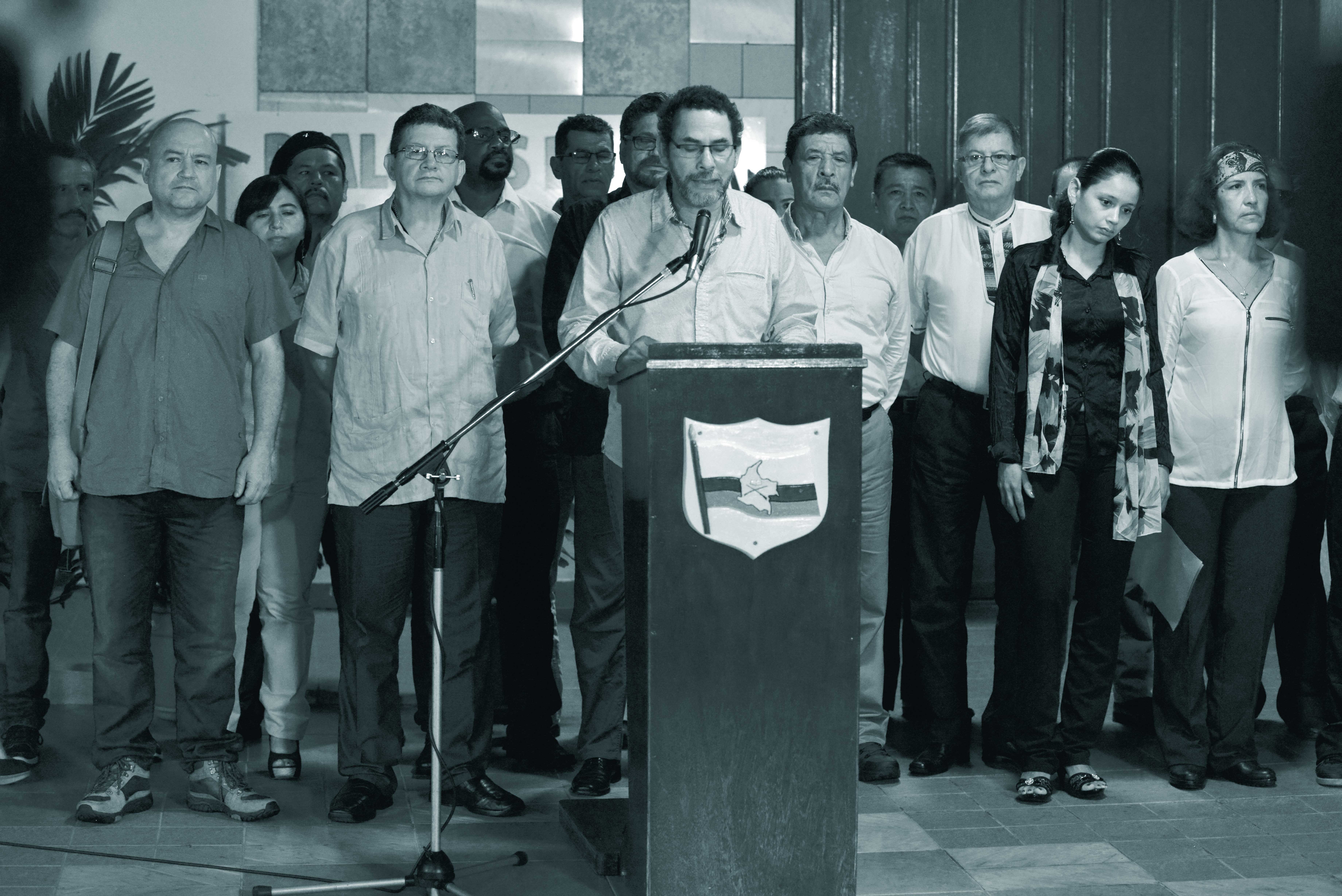 La Delegación de Paz de las FARC-EP en la Mesa de Conversaciones presenta a nuevos integrantes, entre ellos a dos miembros del Secretariado Nacional, José Lisandro Lascarro (Pastor Alape) y Julián Gallo Cubillos (Carlos Antonio Lozada).
