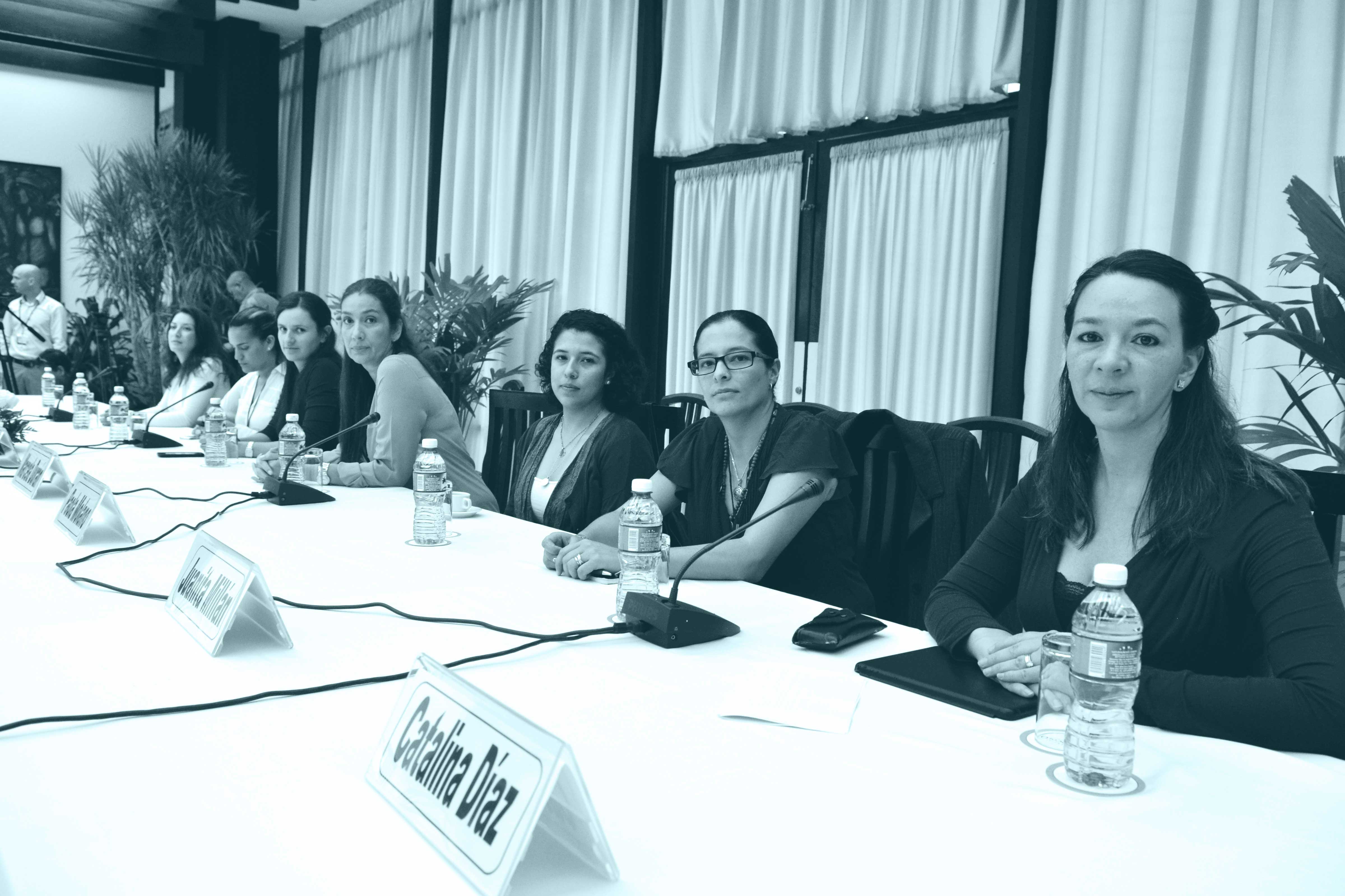Las asesoras de la Delegación del Gobierno nacional durante la tercera visita de organizaciones de mujeres y organizaciones LGBTI a la Mesa de Conversaciones.