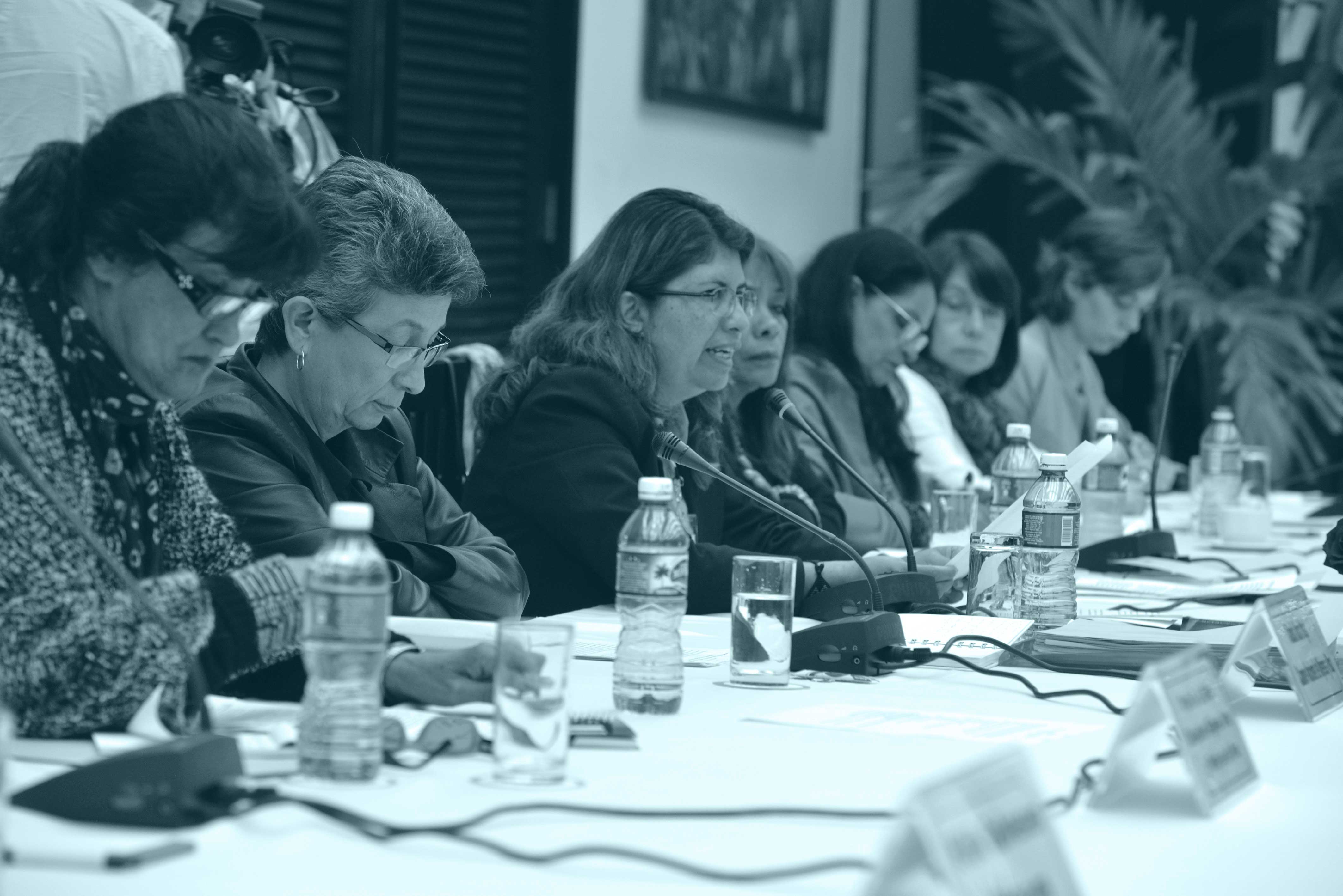 Las delegadas de las organizaciones de mujeres durante su intervención en la reunión con la Subcomisión de Género.