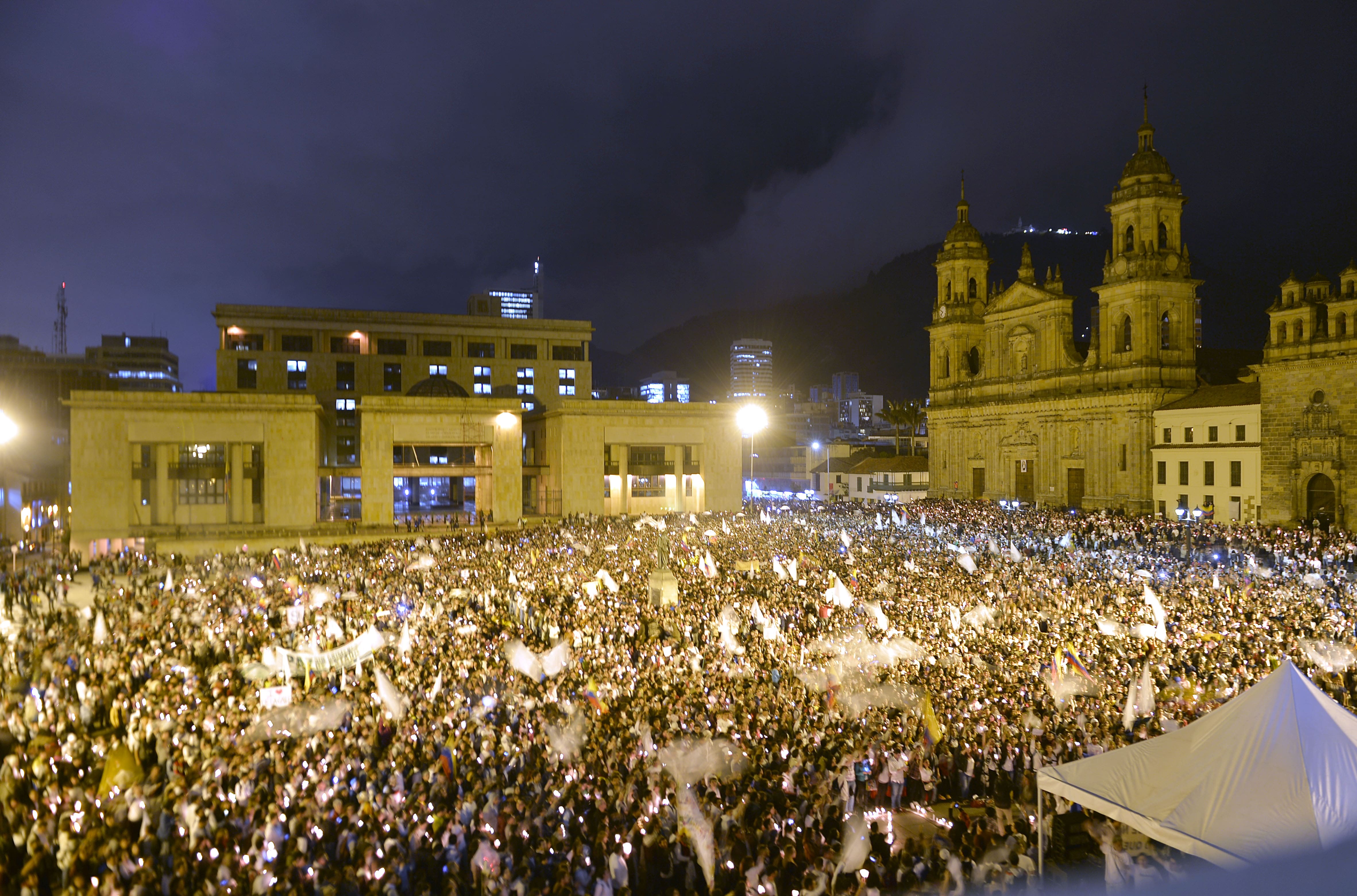 Miles de bogotanos se reunieron en la Plaza de Bolívar, como manifestación a favor de la paz de Colombia, tras el triunfo del “No”, en el plebiscito del 2 de octubre de 2016. Foto por Juan David Tena