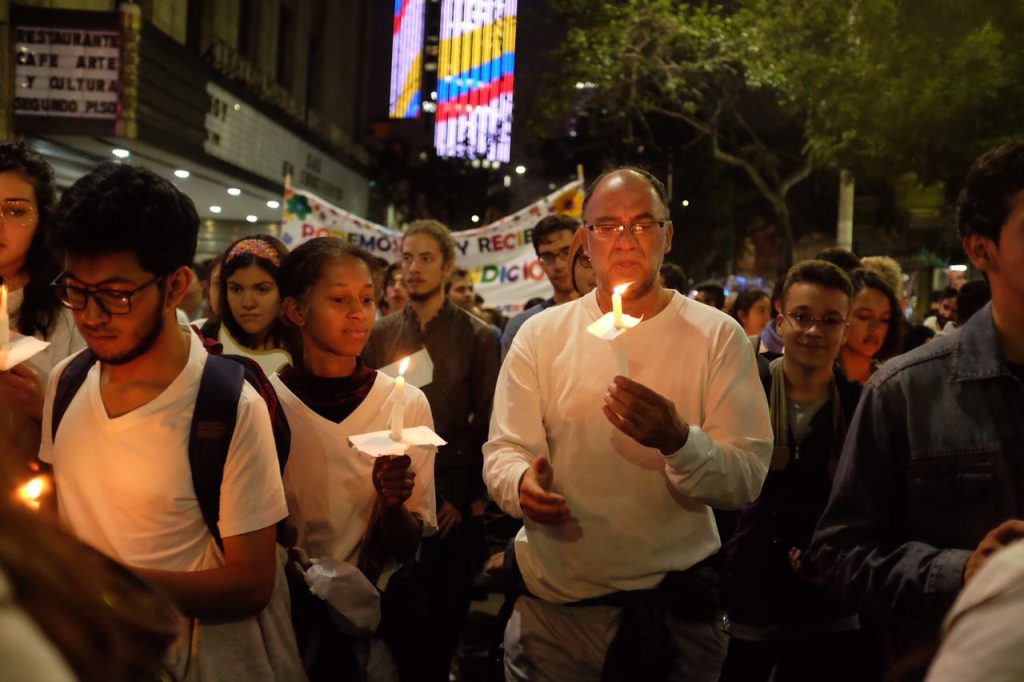 Con velas encendidas los bogotanos salieron a marchar por las calles pidiendo al Gobierno Nacional, a las FARC-EP y a los opositores del Acuerdo de Paz buscar soluciones para lograr alcanzar un acuerdo que acabe con más de 50 años de violencia en el país. Foto por Nelson Cárdenas.