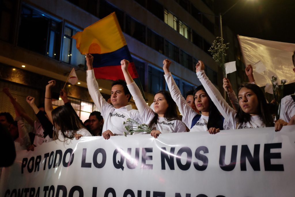 Con pancartas, banderas, flores, velas y ropa blanca en señal de reconciliación, los colombianos salieron a marchar por las calles del país para exigir al gobierno, a la guerrilla y a los opositores de los acuerdos de La Habana lograr consensos que permitan poner fin a un conflicto de más de 50 años en Colombia. Foto por Nelson Cárdenas.