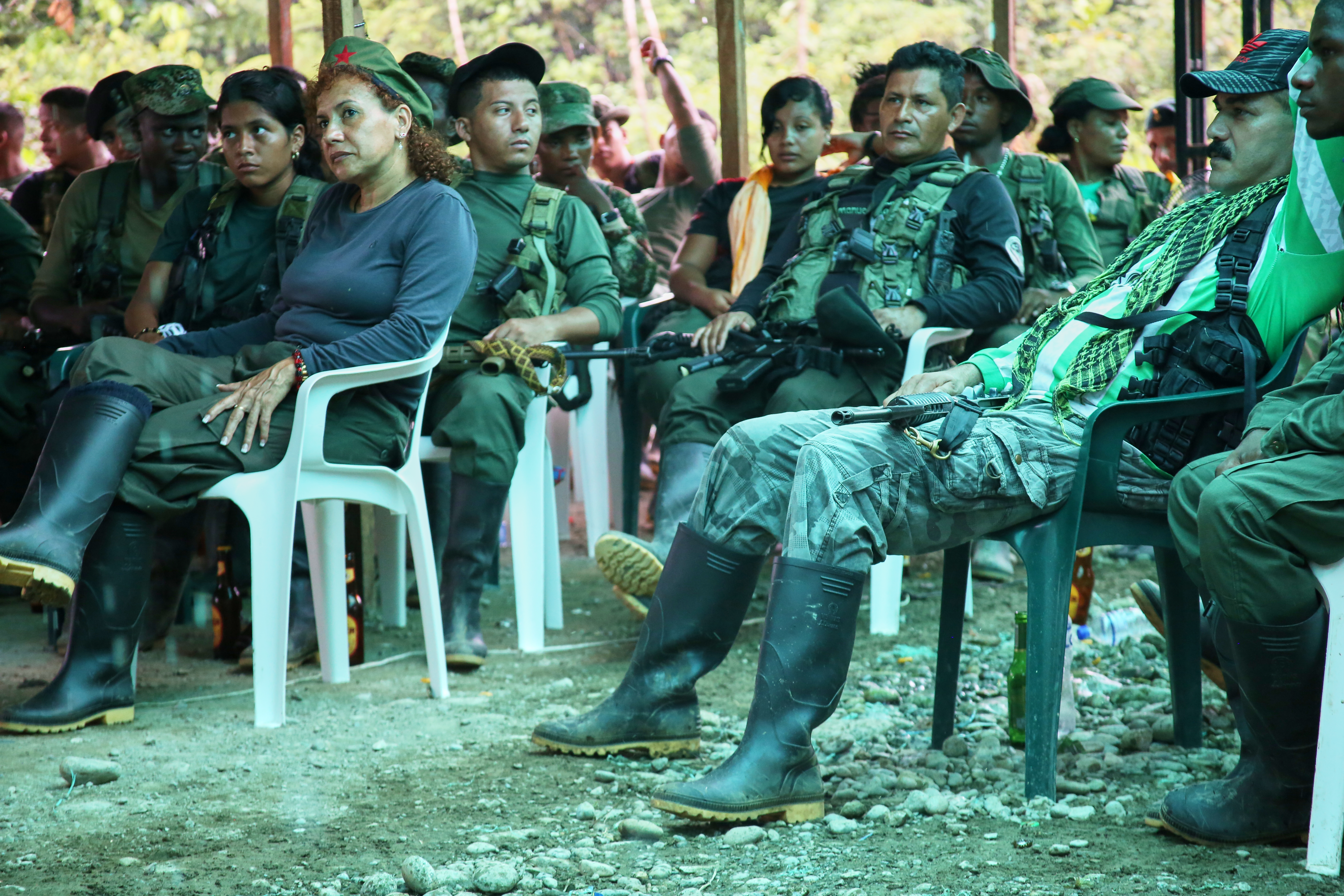 Integrantes del Bloque Occidental participan de la primera jornada de Pedagogía para la Paz de las FARC-EP, organizada para explicarles el Acuerdo de Paz de La Habana, Cuba. Santa María, Timbiquí, Cauca. Fotografía por Jacinto Constante