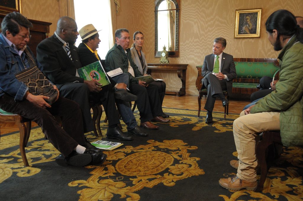 Imagen de la reunión que sostuvo el presidente Juan Manuel Santos Calderón con representantes de organizaciones indígenas, campesinas y afrodescendientes en la Casa de Nariño. Allí le expresaron su total respaldo y le pidieron implementar los Acuerdos de La Habana a la mayor brevedad. Foto por Nelson Cárdenas.